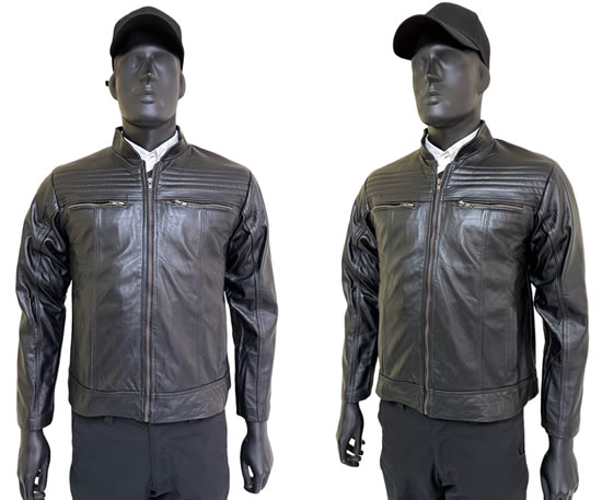 Leather jacket with high density polyethylene PEUD fabric ballistic panels. This model is a unique garment with specific functions and ergonomic design interface for everyday use.